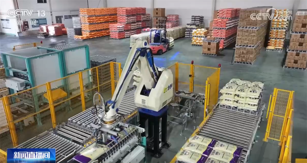 走进这家企业的大米加工车间,各条全主动化生产线高速工作,整理、砻谷、碾米、抛光等过程有序进行,加工好的大米通过全主动真空低氧包装机,再经打包称重、抽真空、金属勘探等,装袋入箱输送到制品库房,数台巨大的码垛机器人灵敏运转,将刚下线的一袋袋大米堆放规整,全主动化的设备既能进步工艺流程的质量稳定性,也能实时监测工艺流程,进一步确保大米加工质量。
